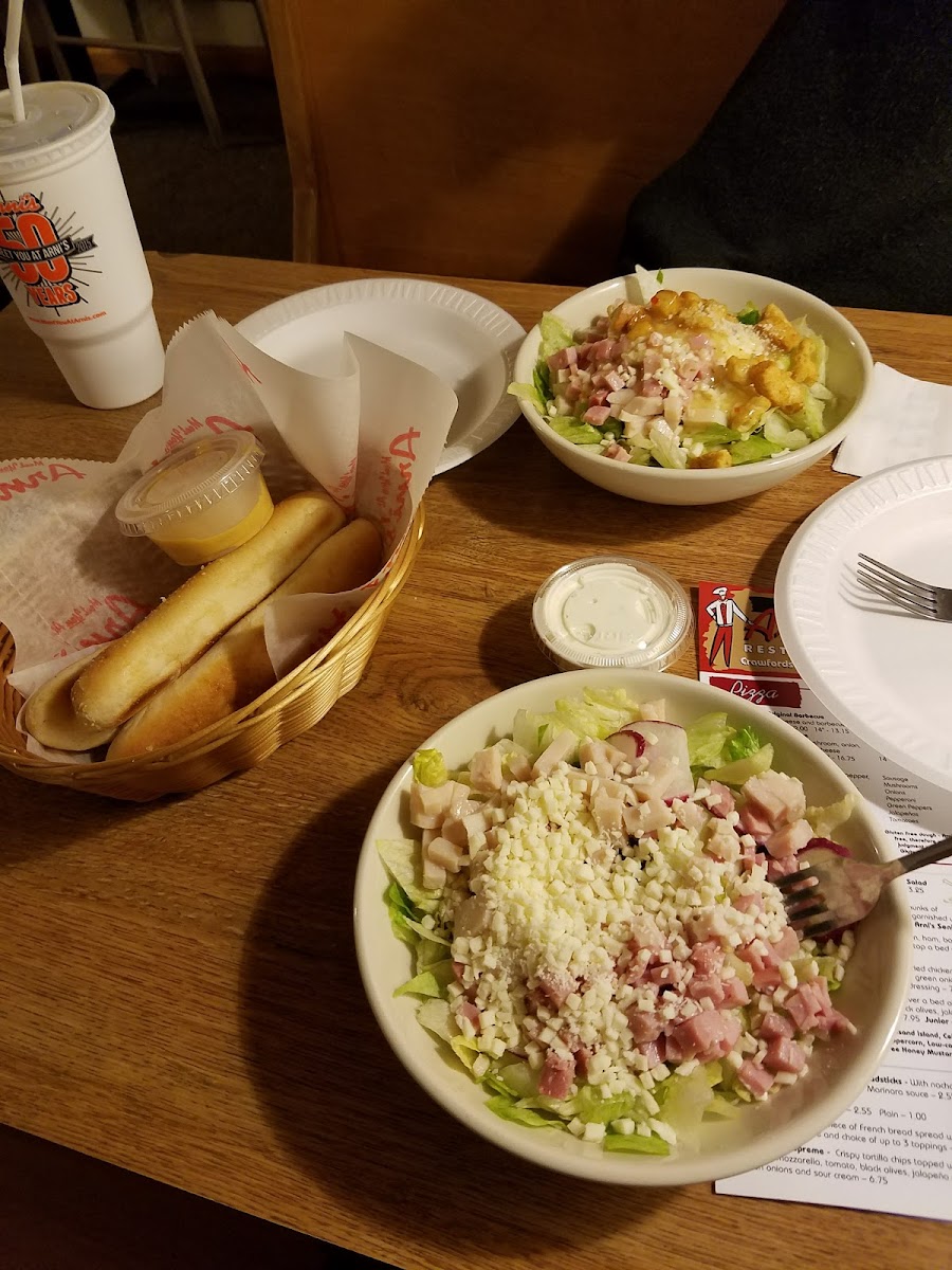 A pleasant dine in experience food is fresh well prepared and timely served,restaurant is clean,associates are eager,friendly and courteous,,carry outs are always exactly to order,ready to go upon arrival and oven fresh hot.